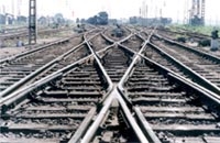除此而外,還有一種交叉設(shè)備,通常使用的叫做菱形交叉。它由兩組銳角轍叉和兩組鈍角轍叉組成,但沒(méi)有轉(zhuǎn)轍器,所以股道之間不能轉(zhuǎn)線(xiàn)。